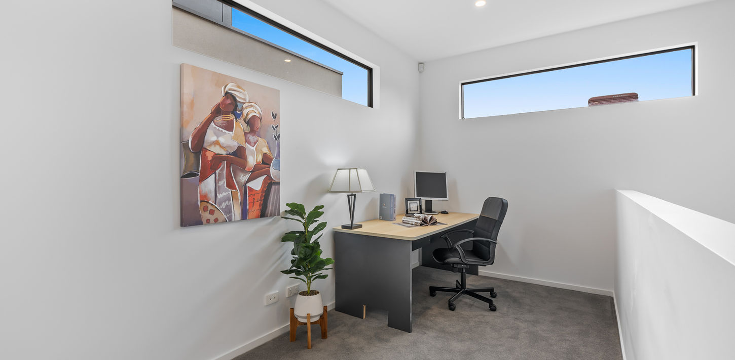 Upstairs, the retreat/study area accompanies the two robed and carpeted bedrooms along with a stylish bathroom boasting a shower, vanity and toilet.
