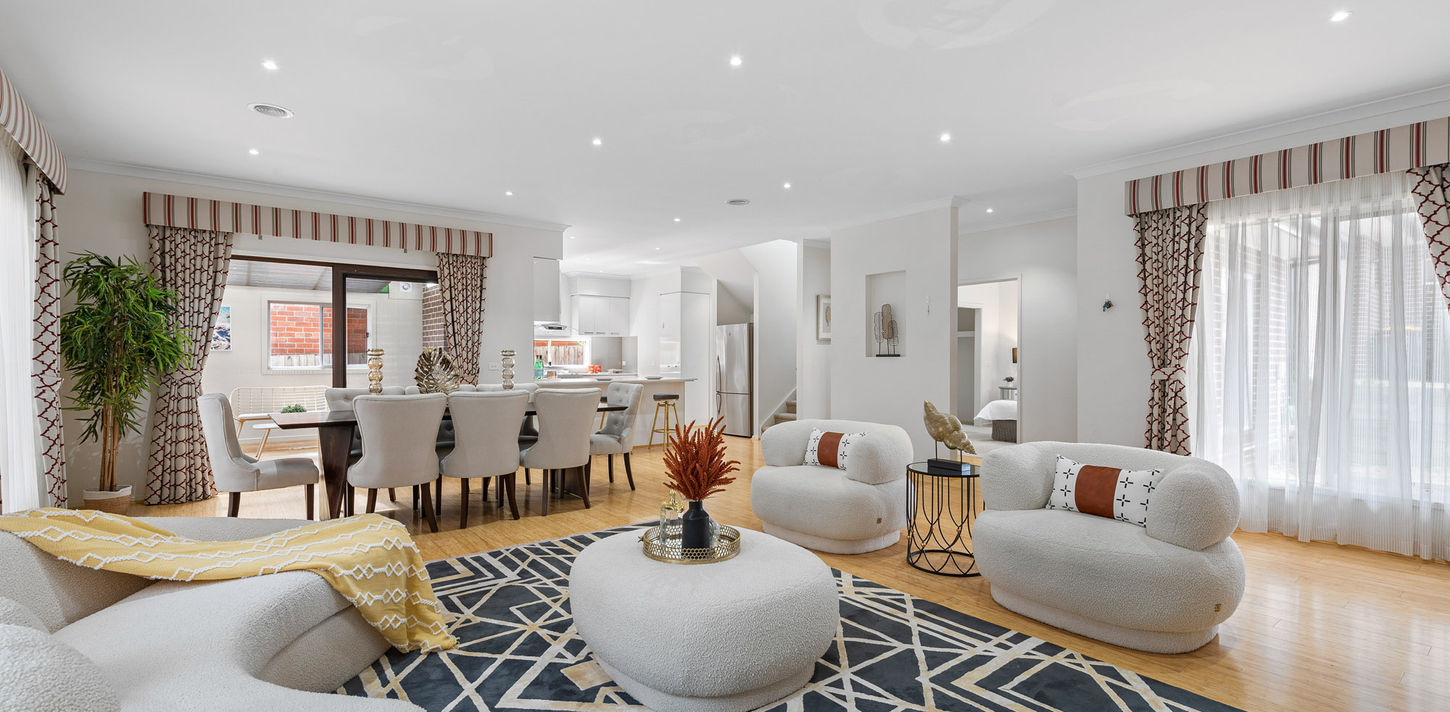 This property is ideal for large and extended families who value space and comfort. It features four spacious bedrooms with robes, two of which are master suites (one on each floor). It also has a powder room, a large living area, a well-equipped kitchen with stone bench tops and quality appliances, and an al fresco dining area. The home boasts high ceilings, timber flooring, frameless shower, ducted heating, evaporative cooling, remote garage with internal access, and a garden courtyard.